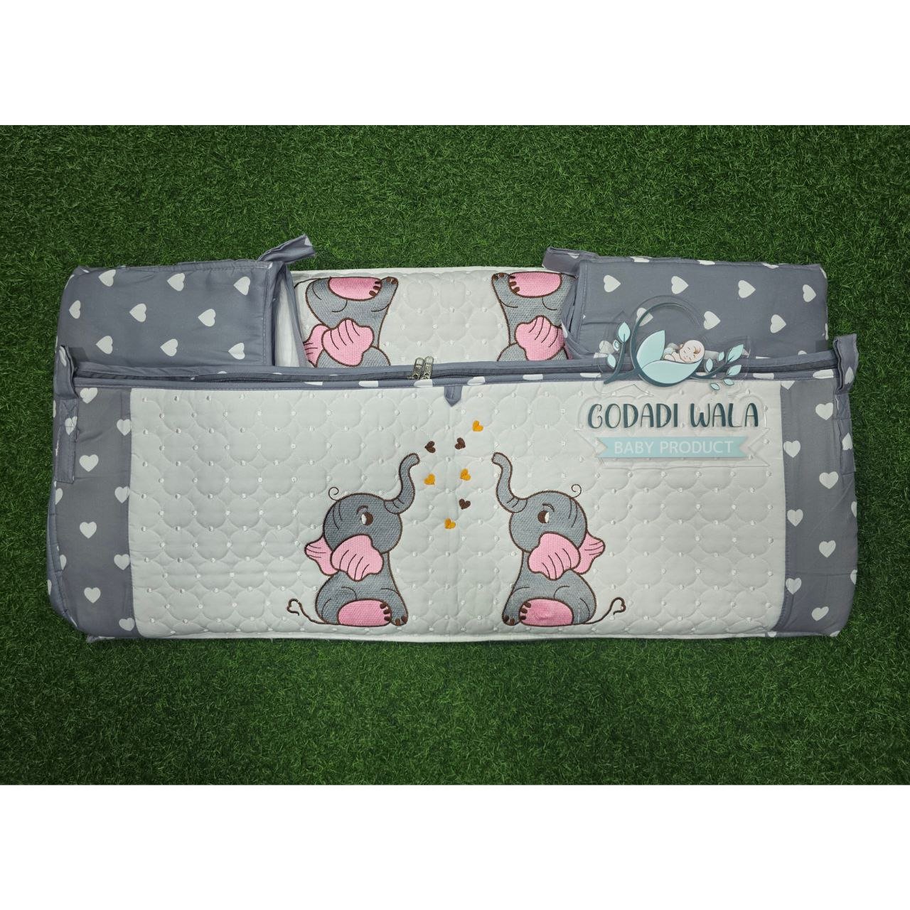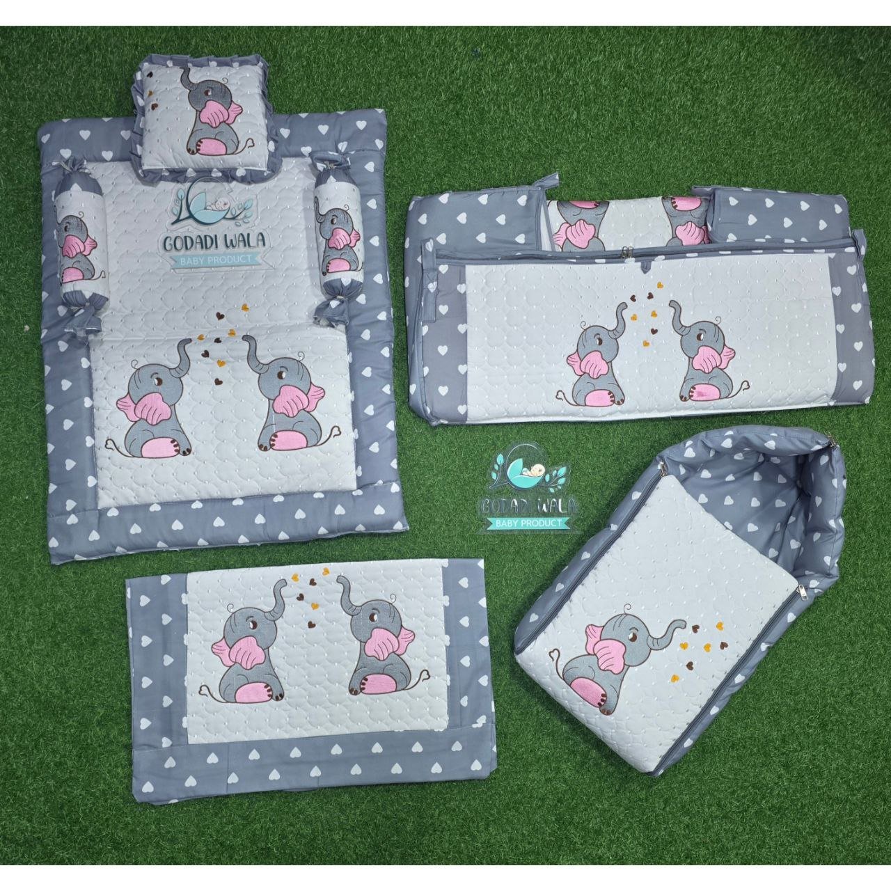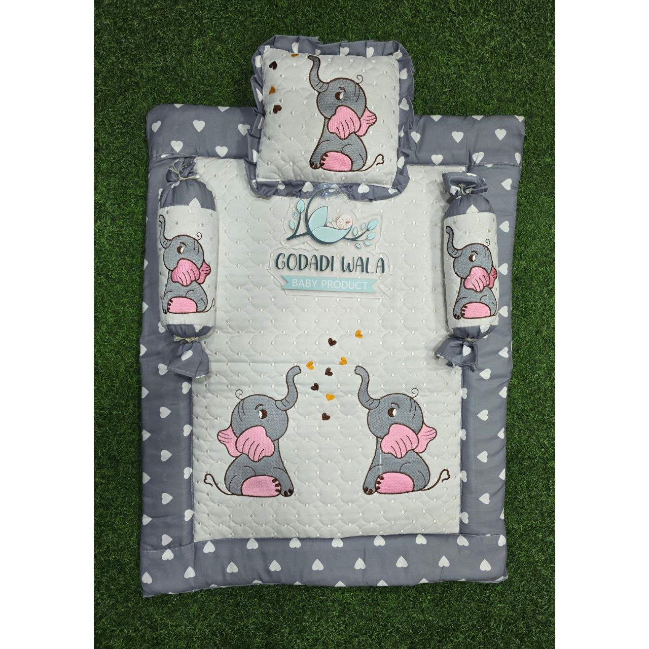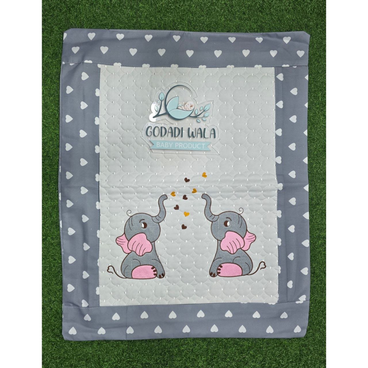 Godadi Wala Baby Bedding Set Embroidery with Digital (2-Elephants) set (0-10)Months (Grey)