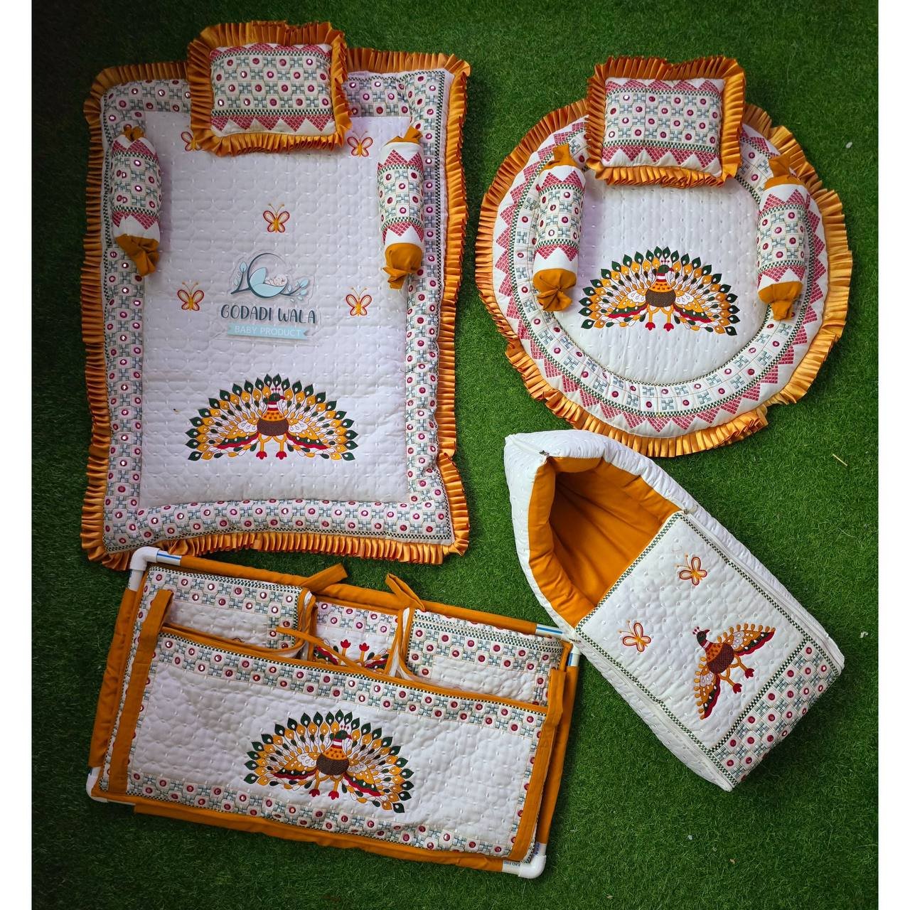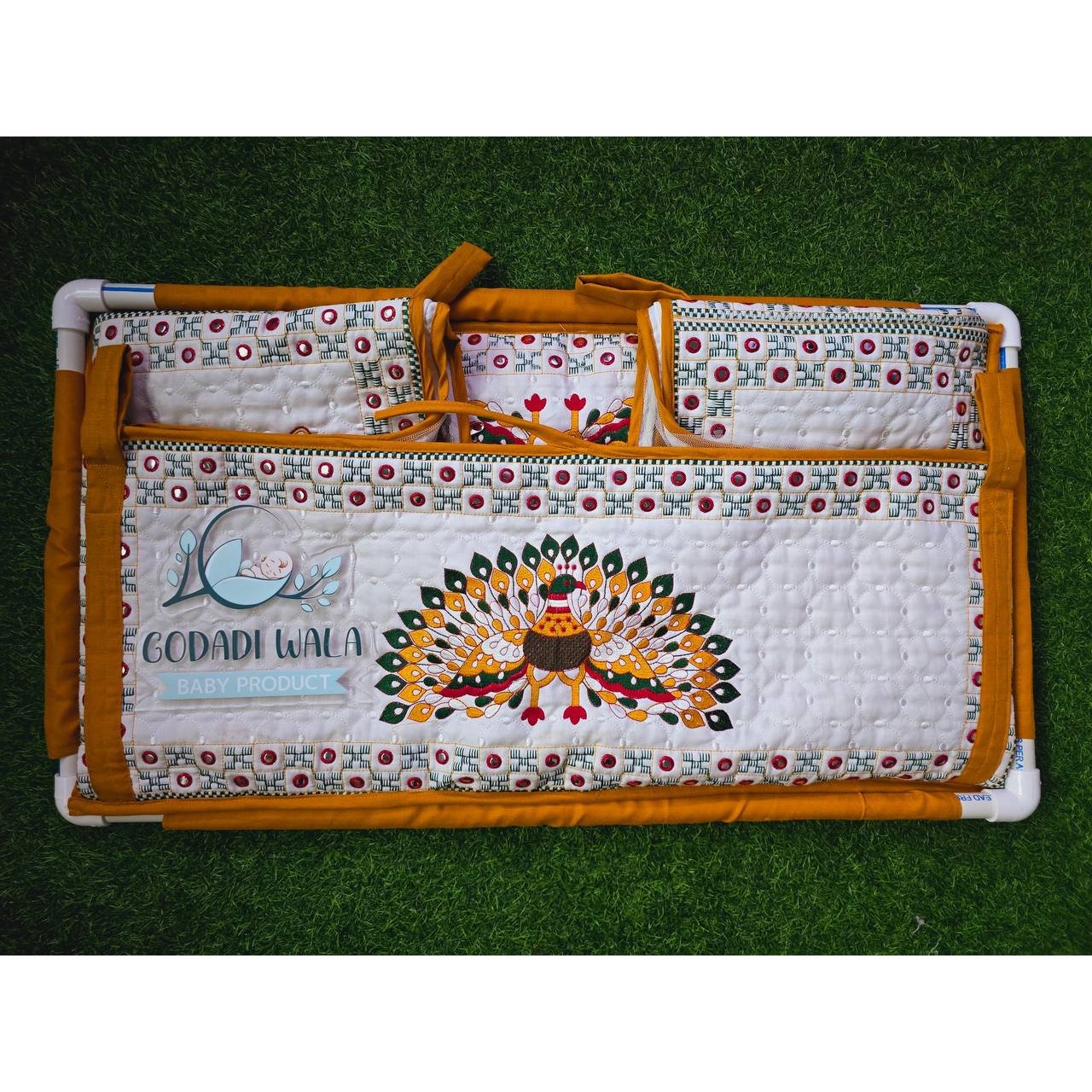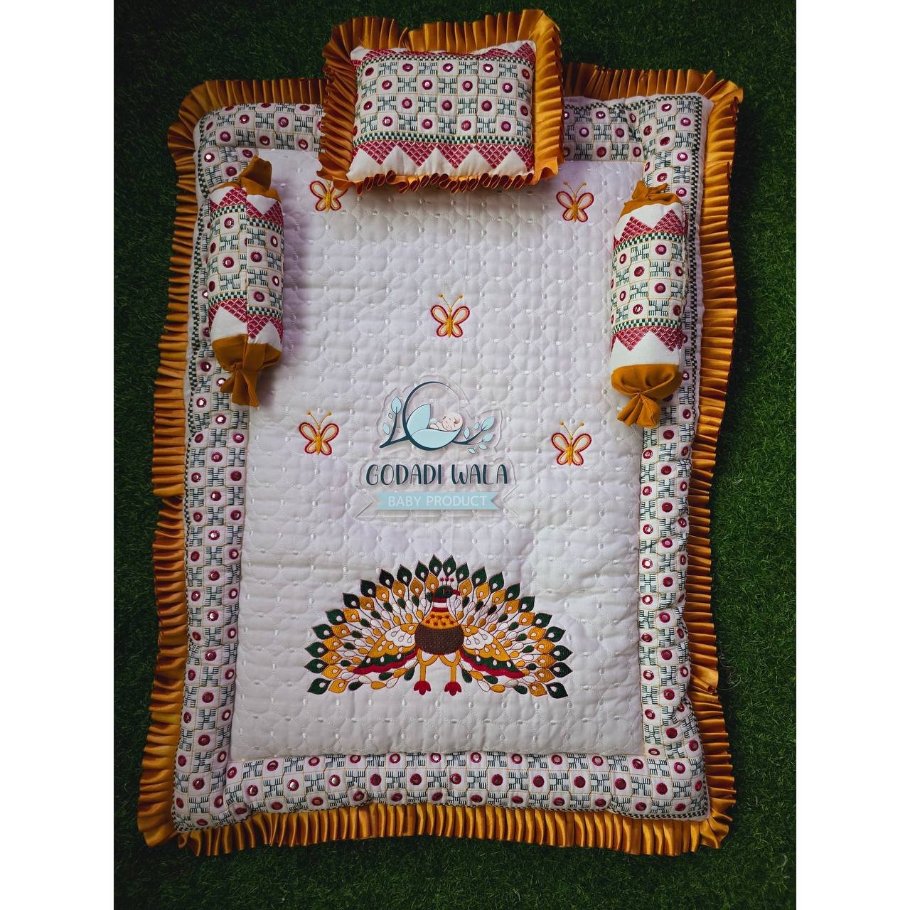 Godadi Wala Baby Bedding Set Embroidery Work Morpankh (0-10)Months (Yellow)