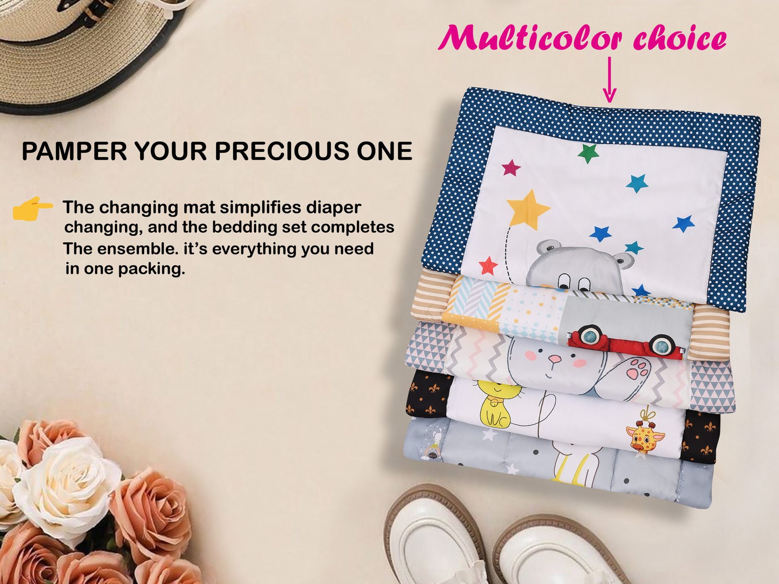 A ” Godadi Wala ” In several parts of our country, it is usually referred to as “Godaries” or “Godali.” By stacking four layers of a pure cotton sheet on top of one another, it is made from a secure 100% cotton material. A tiny cushion that is perfect for babies as they play or sleep is made by stuffing each layer with cotton and sewing the layers together. By keeping your infant on rubber or synthetic material, you can avoid their skin from coming into contact with such hazardous substances. The cotton sheet calms and protects your baby’s delicate skin, and you can easily transport it anywhere thanks to its lightweight design. may be easily cleaned and put to use once more. Its best quality is also that it. “Your feedback is matters” “Customer Trust Is Our Success.”