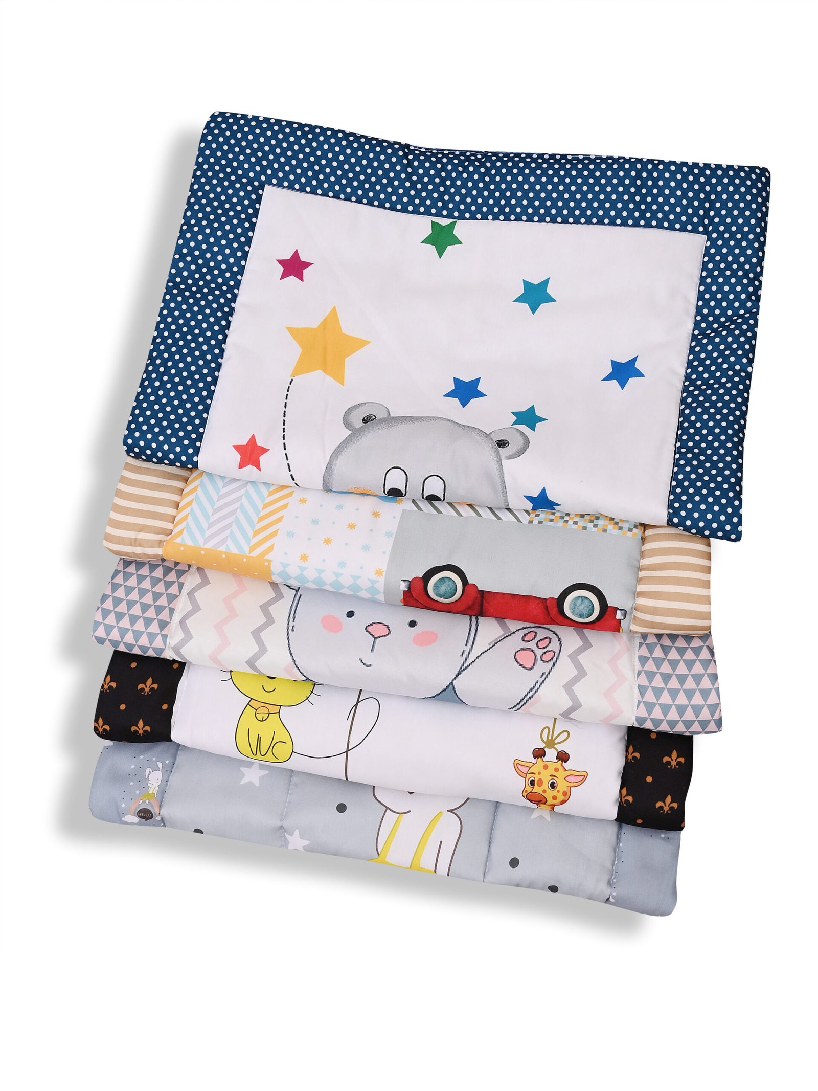 GODADI WALA present a new born baby 1 pcs godadi set (5-g-darkblue panda-yellow truck- grey panda-black animal-grey hello meow)