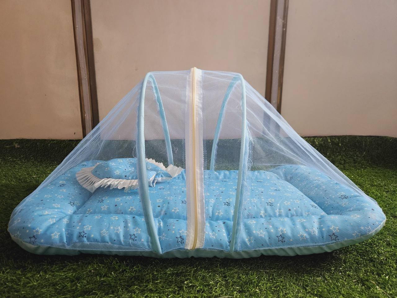 - This Cotton Mosquito Net Bedding Contains 1 Multicolor Digital Print Mattress With 1 Frill Pillow And Attached Mosquito Net Which Has Both Side Zip Closure