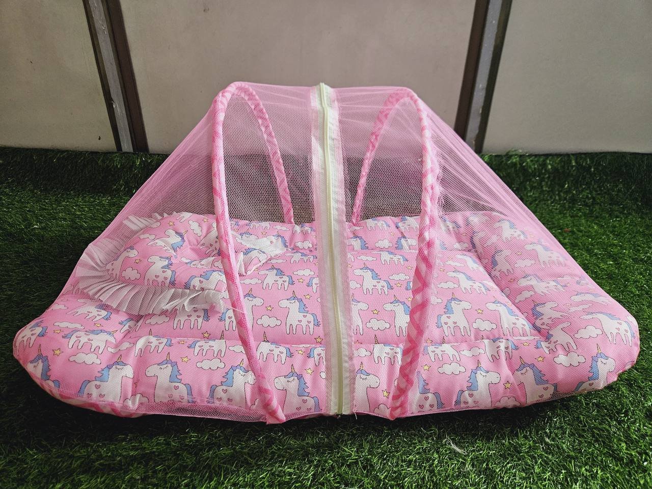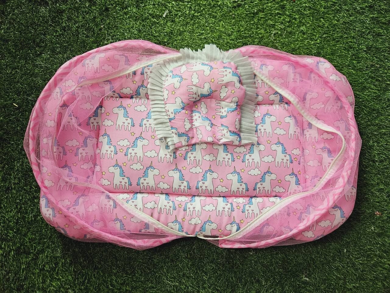 GODADI WALA Present Print Cotton Bedding Set Thick Base Foldable  with Mosquito Net and Head Pillow - Zip Closure