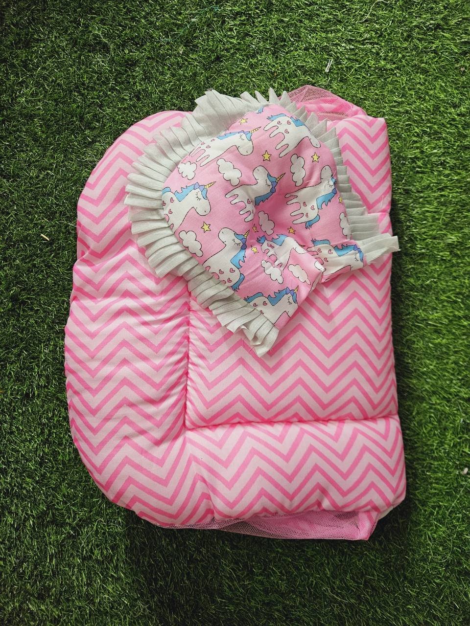 GODADI WALA Present Print Cotton Bedding Set Thick Base Foldable with Mosquito Net and Head Pillow – Zip Closure
