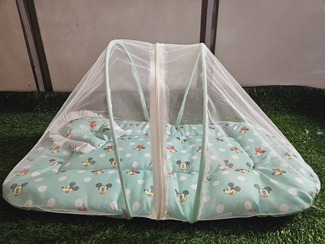 GODADI WALA Present Print Cotton Bedding Set Thick Base Foldable  with Mosquito Net and Head Pillow - Zip Closure